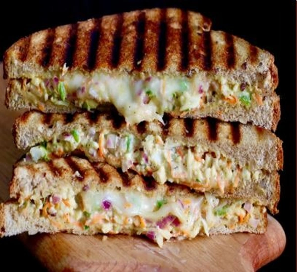 Pure Wheat Bread Filled with Fresh Veggies with Cheese and Mayos and Souses with Cheese toppings