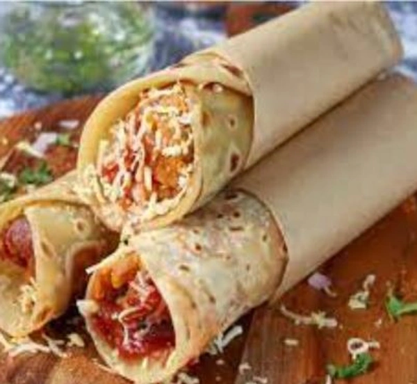 Laccha Paratha filled with Sorted Vegetables Garnished with Souses, Mayonies with Cheese Toppings