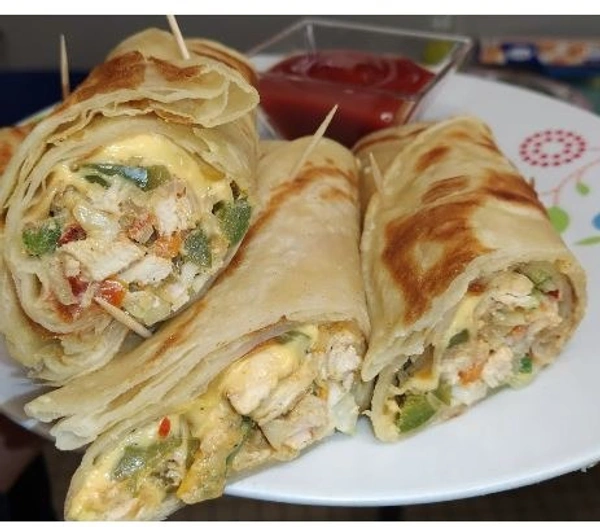 Laccha Paratha filled with Sorted Vegetables Garnished with Souses and Mayonies
